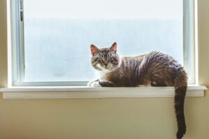 gray cat at window