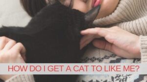 woman petting black cat
