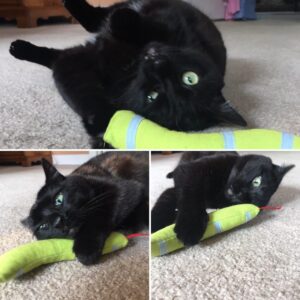 cat playing with catnip toy