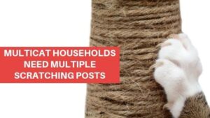 closeup of a cat’s paw scratching on a corrugated cardboard scratching post